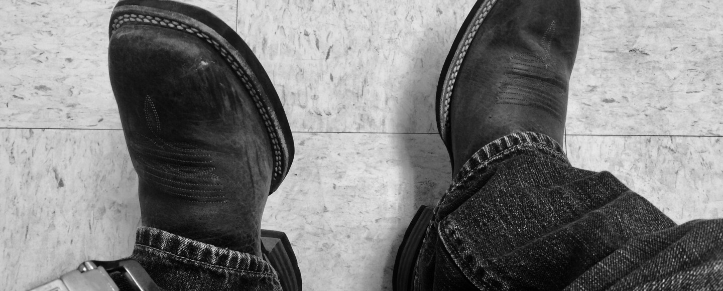 His boots’ll be slid under starch-creased jeans
